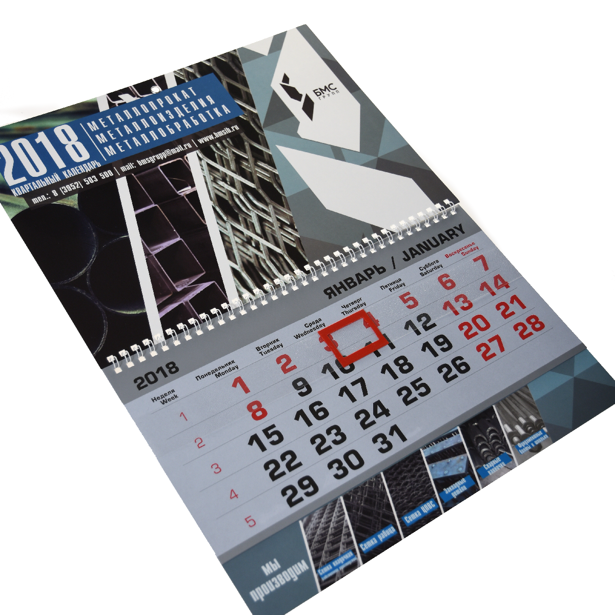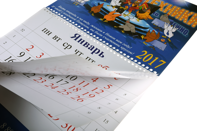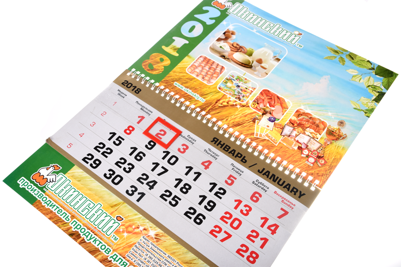 Наша типография наравне с трехблочными календарями любит делать и одноблочные! Они ничем не уступают своим собратьям! Компактный одноблочный календарь также имеет постер для размещения изображения, логотипа, слогана вашей фирмы. Нижнее рекламное поле используется для контактных данных и ссылок на сайт вашей фирмы и социальных сетей.