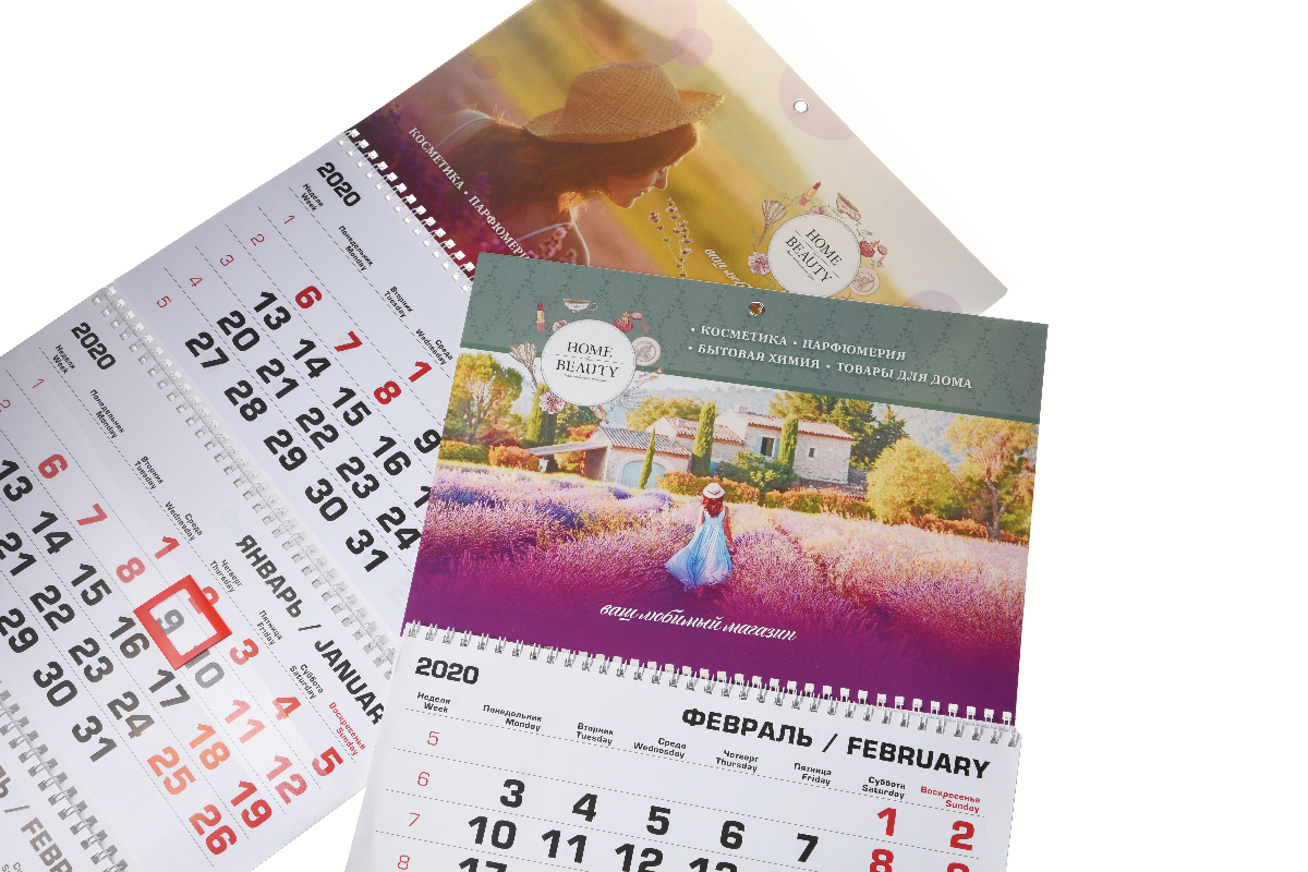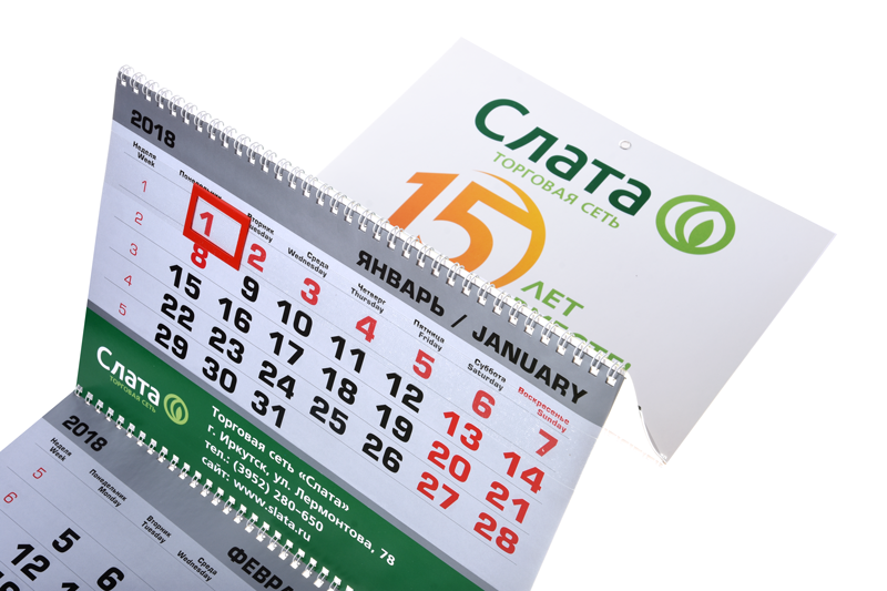 Размеры постеров, рекламных полей и сетки могут различаться. Ниже на сайте можно посмотреть, какие стандартные варианты наша типография предлагает вам. Могут быть и индивидуальные календари как по размерам, так и по характеристикам: кашированные постеры, перекидные постеры, максимальные размеры подложек под календарными блоками, индивидуальные календарные блоки, послепечатная обработка - ламинация софт-тач, тиснение фольгой, выборочный лак и многое другой.